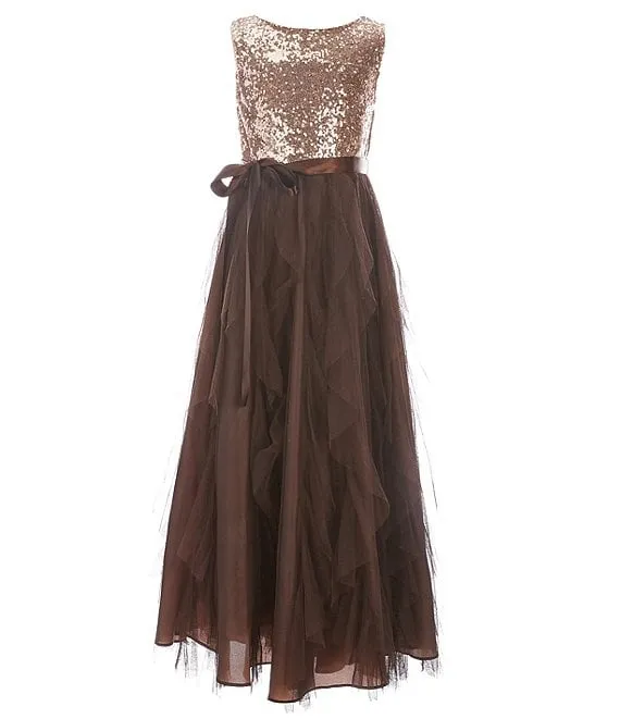 Big Girls 7-16 Sleeveless Sequin Bodice Corkscrew Maxi Dress