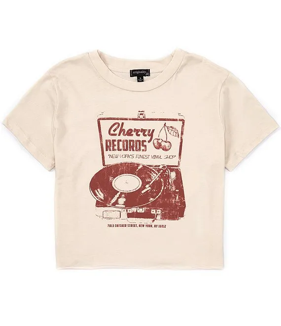 Big Girls 7-16 Short Sleeve Cherry Records Crop T-Shirt