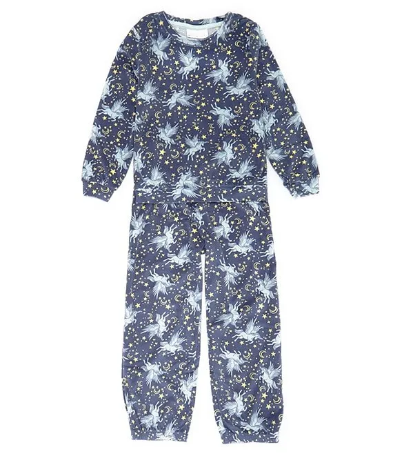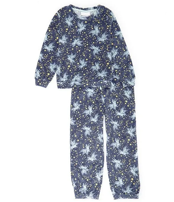 Little/Big Girls Long Sleeve Celestial Unicorn Printed Pajama T-Shirt & Pant Set