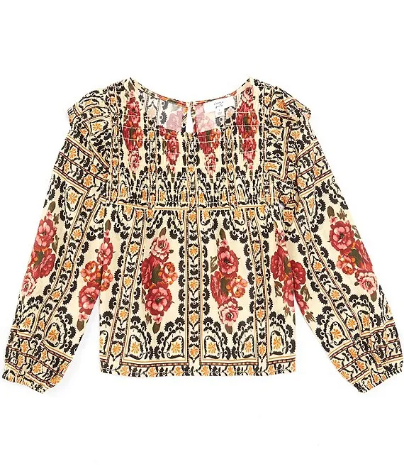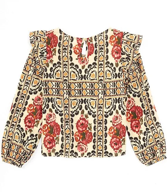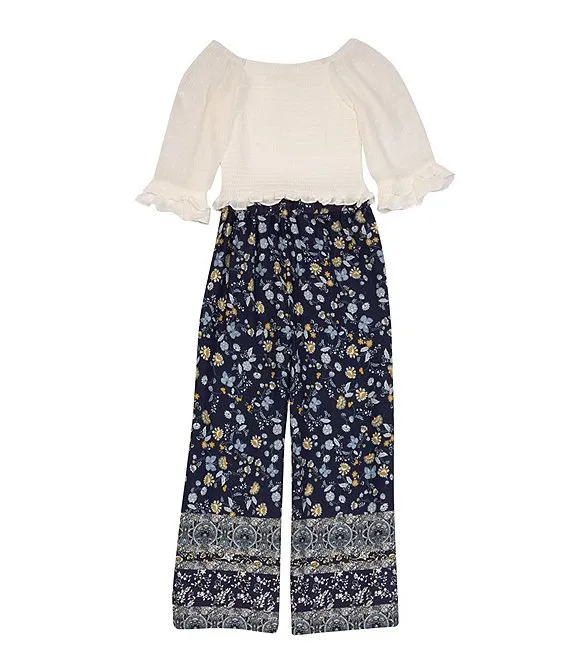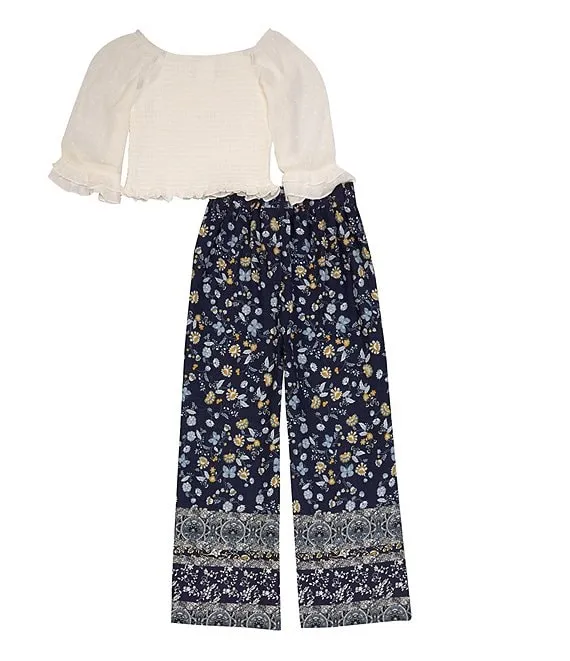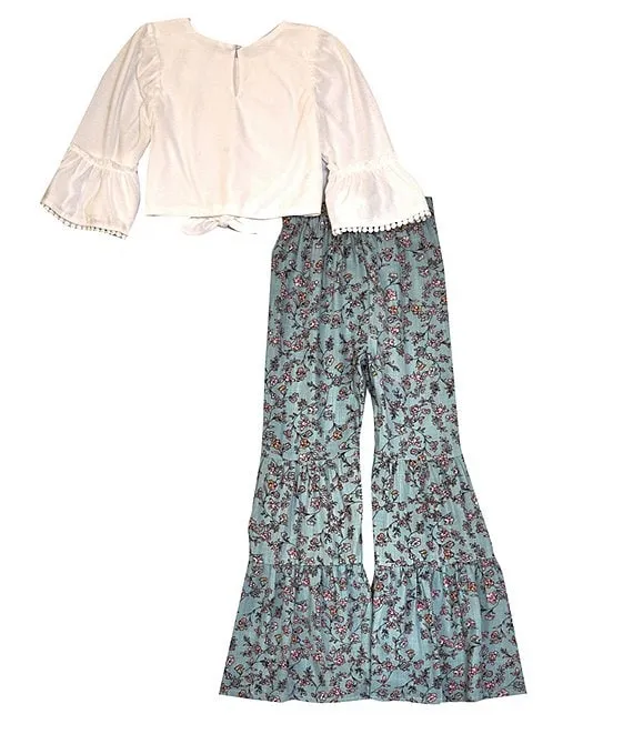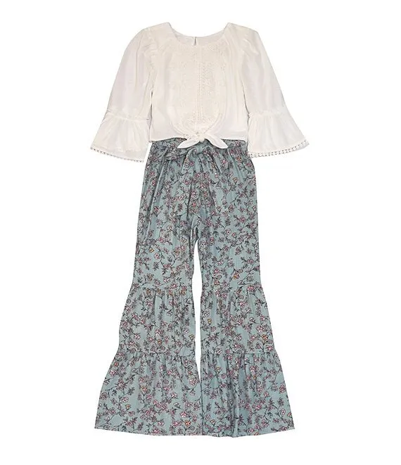 Big Girls 7-16 Ruffle Bell Sleeve And Tie Detail Top with Tiered Floral Palazzo Pants 2-Piece Set