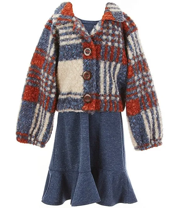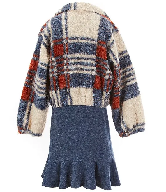 Bonnie Jean Big Girls 7-16 Long Sleeve Patterned Jacket & Short-Sleeve Solid A-Line Dress Set