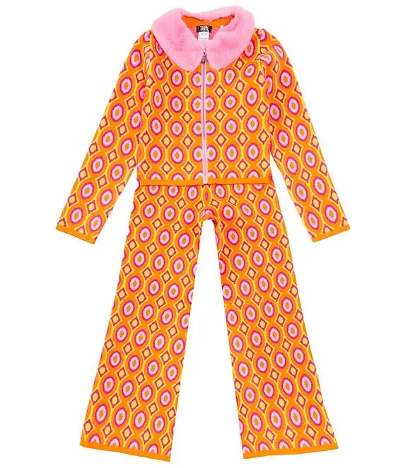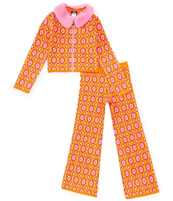 Big Girls 7-16 Printed Top With Faux Fur Collar & Pant Set