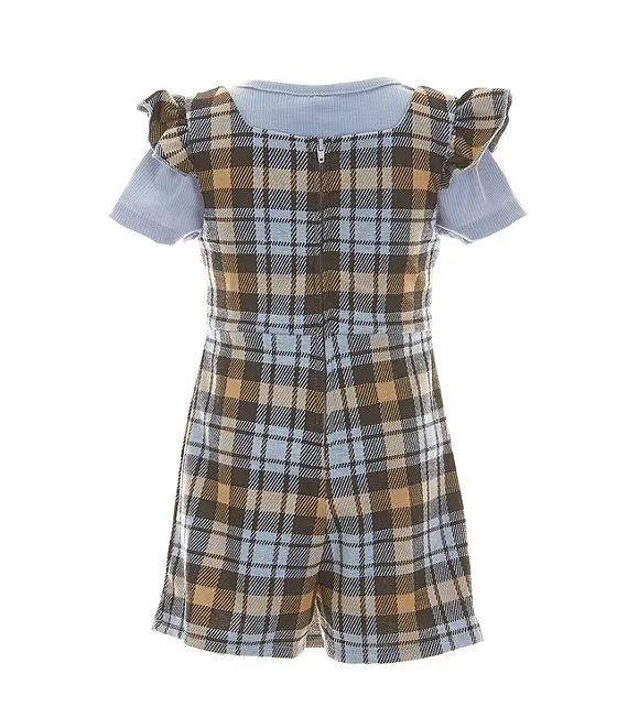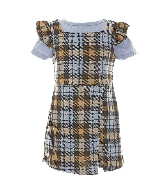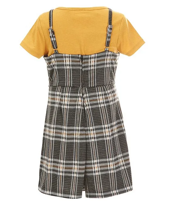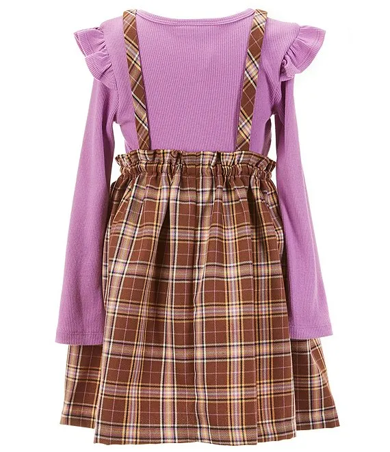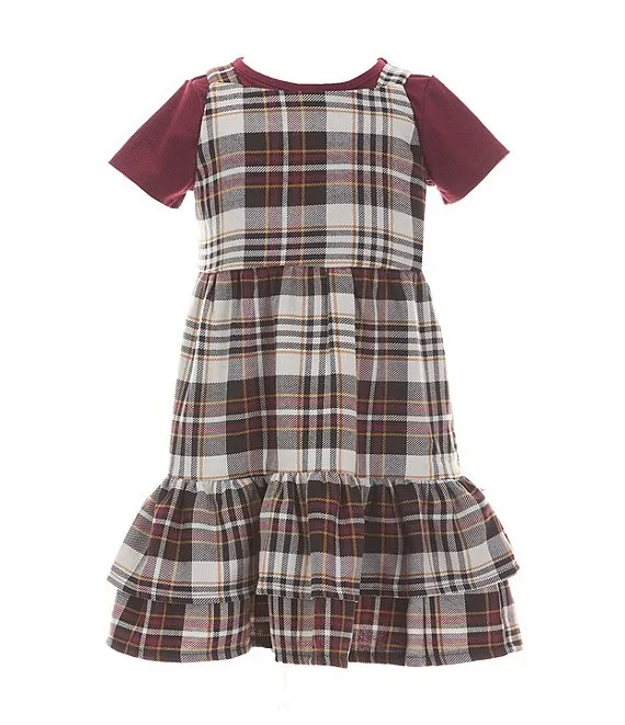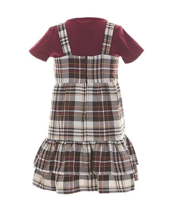 Little Girls 2T-6X Sleeveless Plaid Jumper Dress & Solid Short Sleeve Tee Set