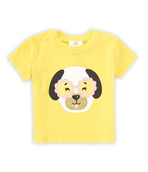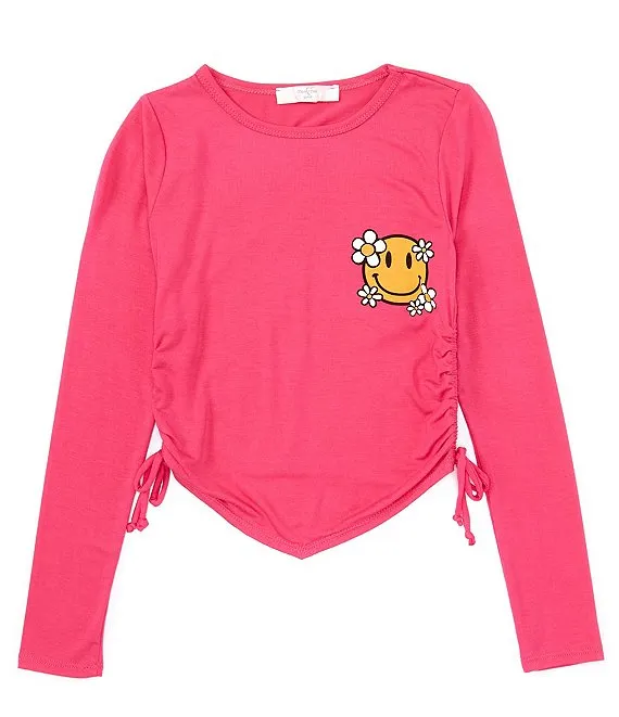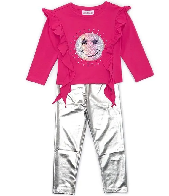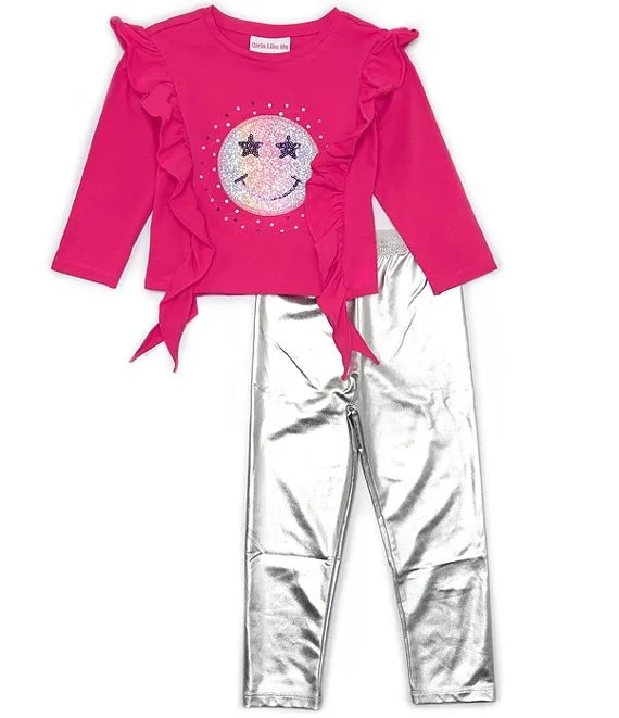Little Girls 2T-6X Long Sleeve Smiley Face Tee & Metallic Leggings Set