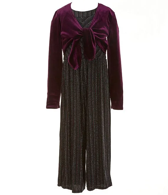 Big Girls 7-16 Long Sleeve Tie-Front Shrug & Halter-Neck Miter-Stripe/Vertical-Stripe Jumpsuit Set