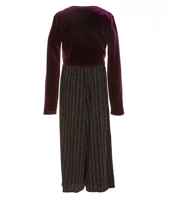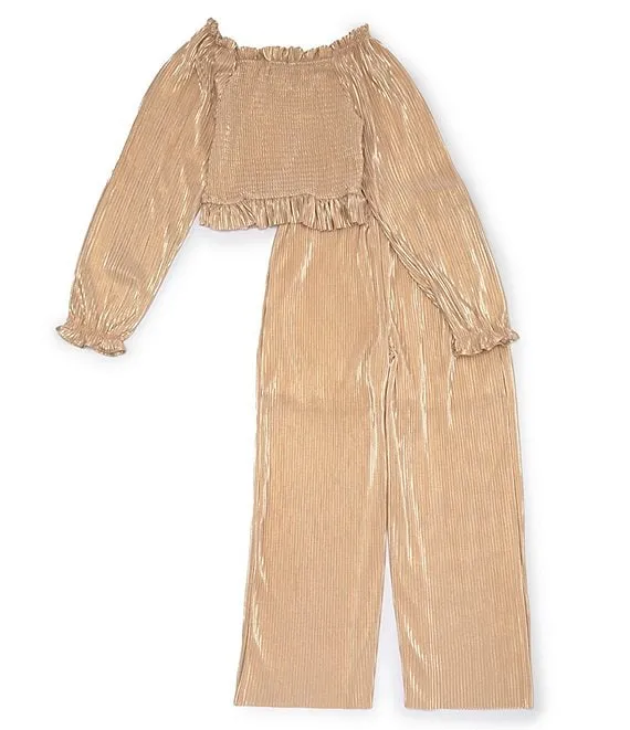 Big Girls 7-16 Long Sleeve Foiled Plisse Top & Matching Wide-Leg Pant Set