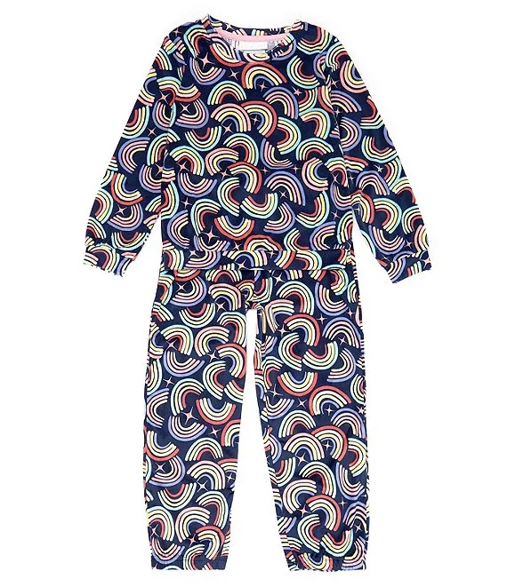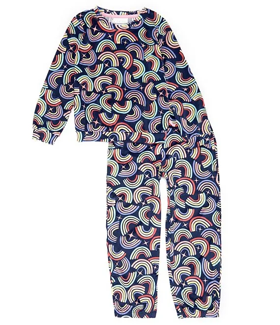Little/Big Girls Long Sleeve Rainbow Print Pajama T-Shirt & Pant Set