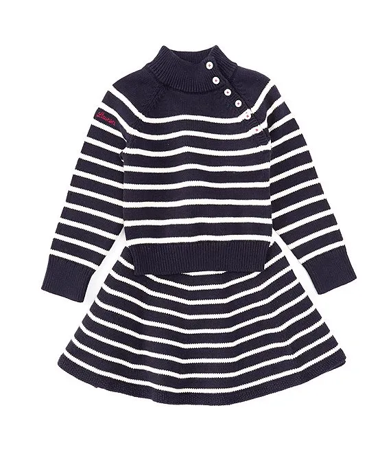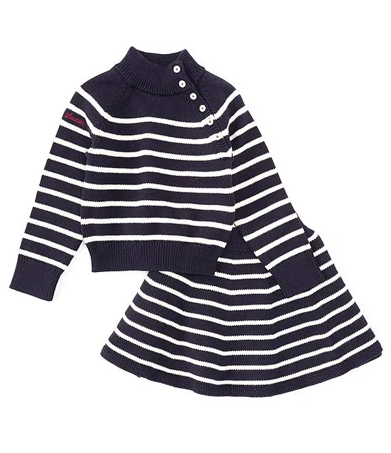 Lauren Ralph Lauren Little Girls 2T-6X Long Sleeve Solid Striped Nautical Inspired Sweater & Striped Skirt Set