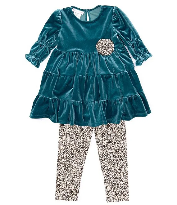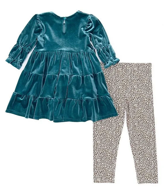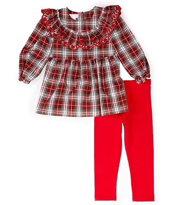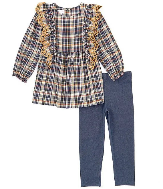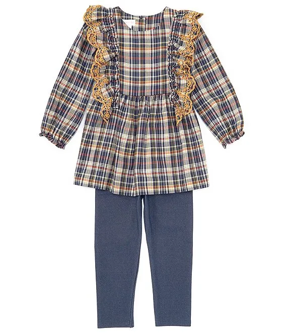 Bonnie Jean Little Girls 4-6X Long Sleeve Ruffle Collar Woven Tunic Top & Solid Knit Leggings Set
