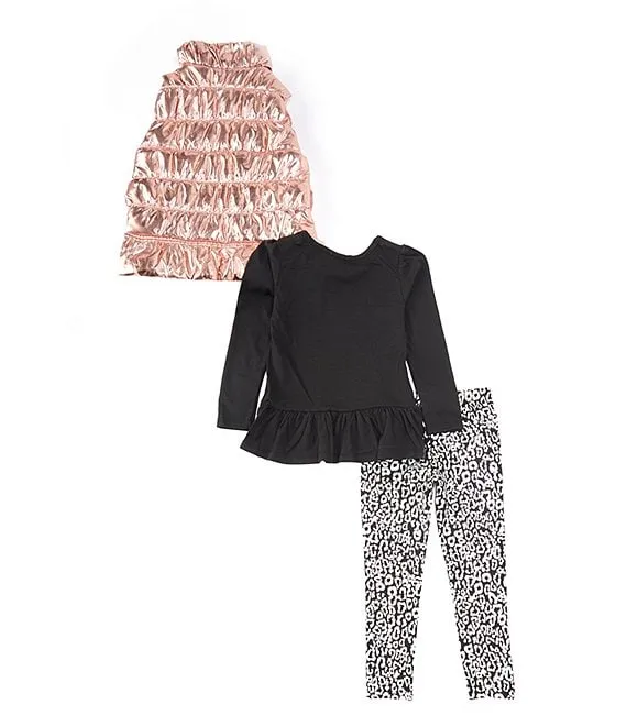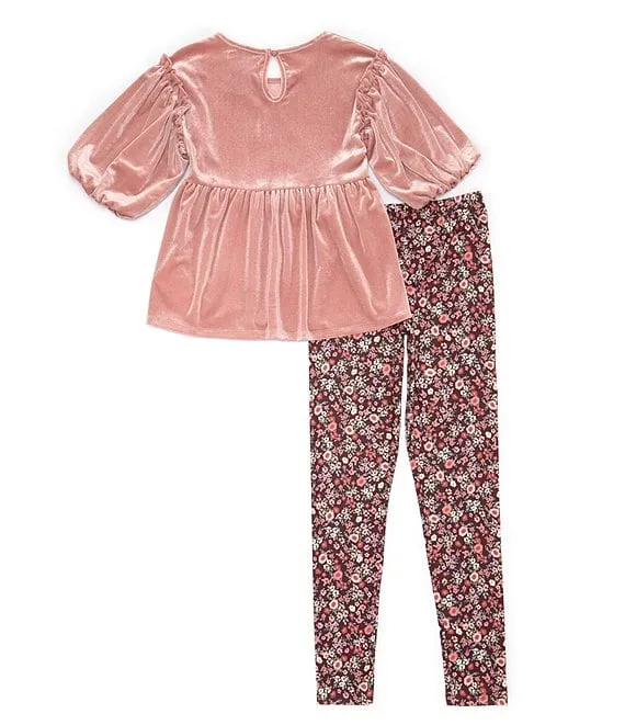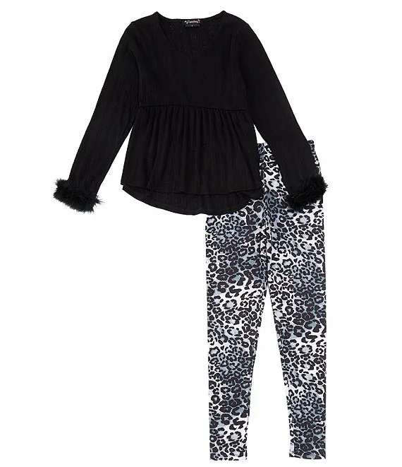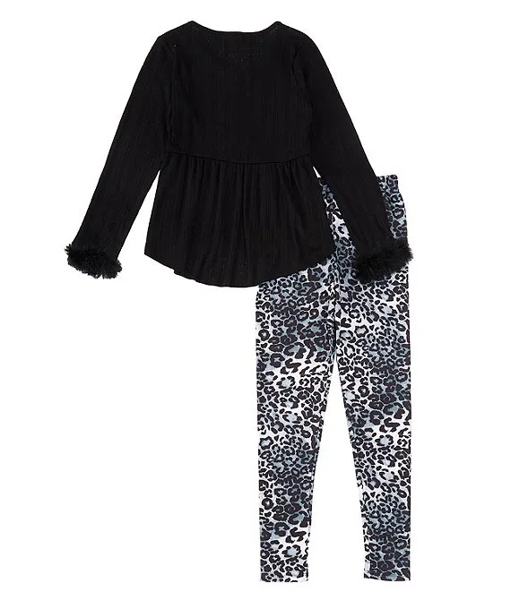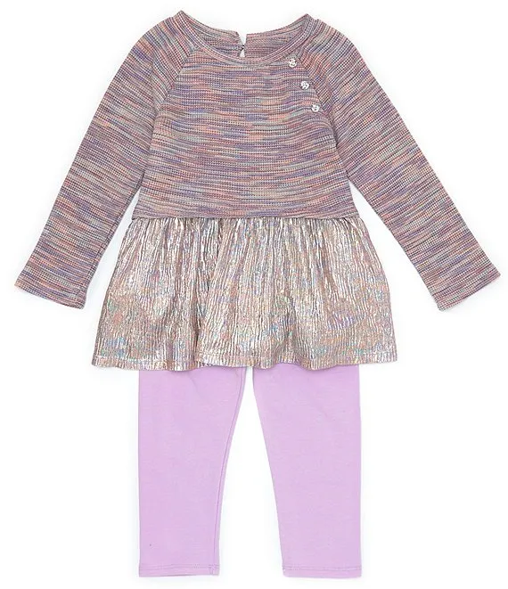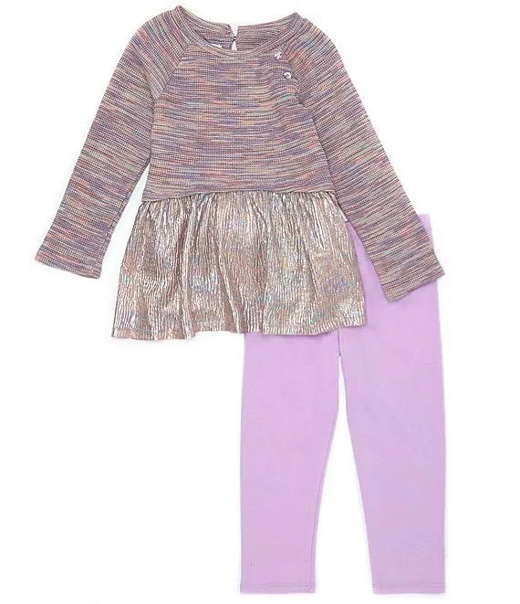 Bonnie Jean Little Girls 2T-6X Long Sleeve Space Dyed Foiled Knit Top & Solid Stretch Knit Leggings Set