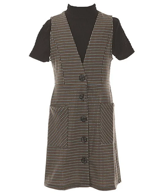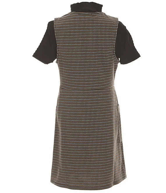 Big Girls 7-16 Sleeveless Menswear-Plaid Jumper Dress & Short Sleeve Solid Tee Set