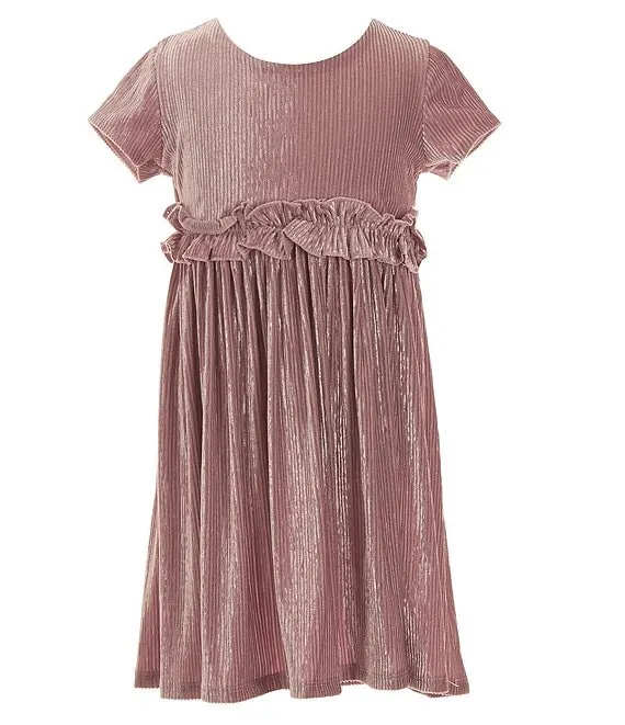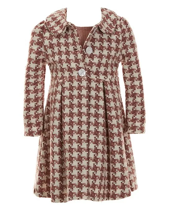 Bonnie Jean Little Girls 2T-6X Long Sleeve Houndstooth Boucle Coat & Short Sleeve Crinkle Stretch Velvet Dress Set