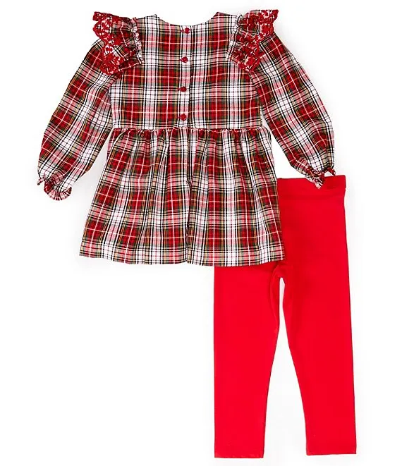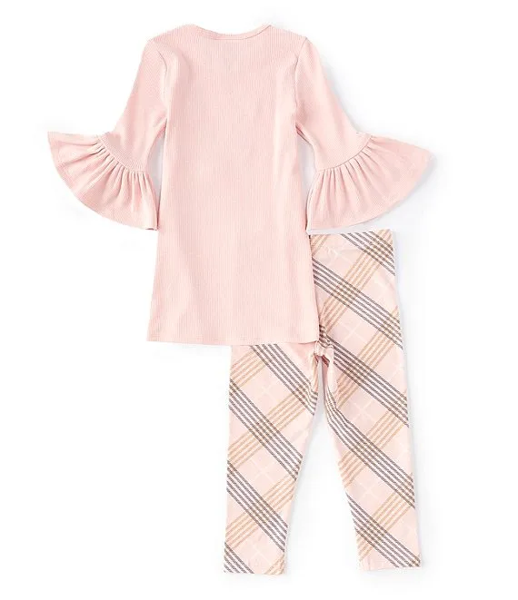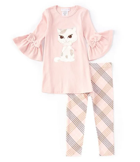 Bonnie Jean Little Girls 2T-6X Bell Sleeve Cat Applique Top & Plaid Printed Legging 2-Piece Set