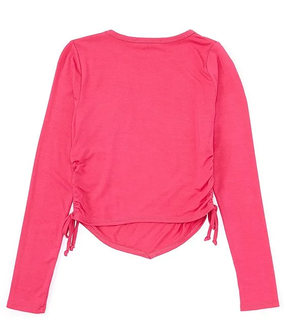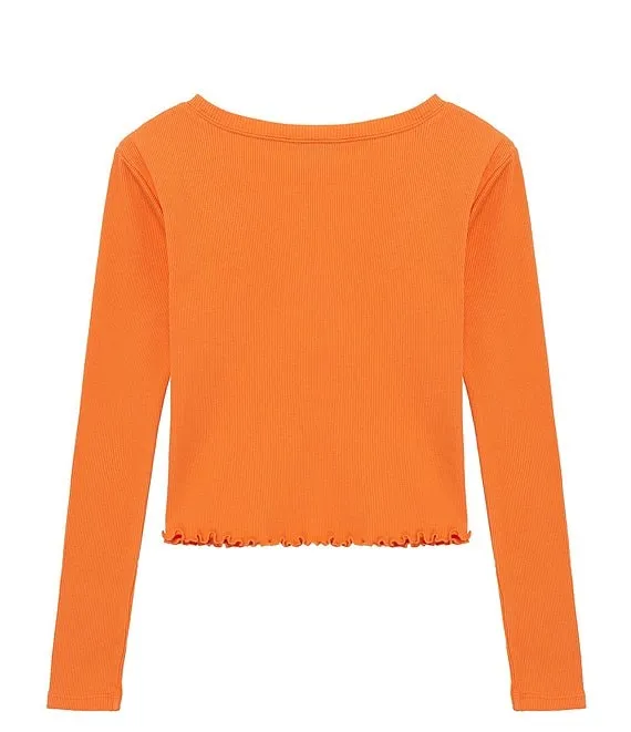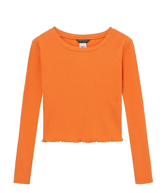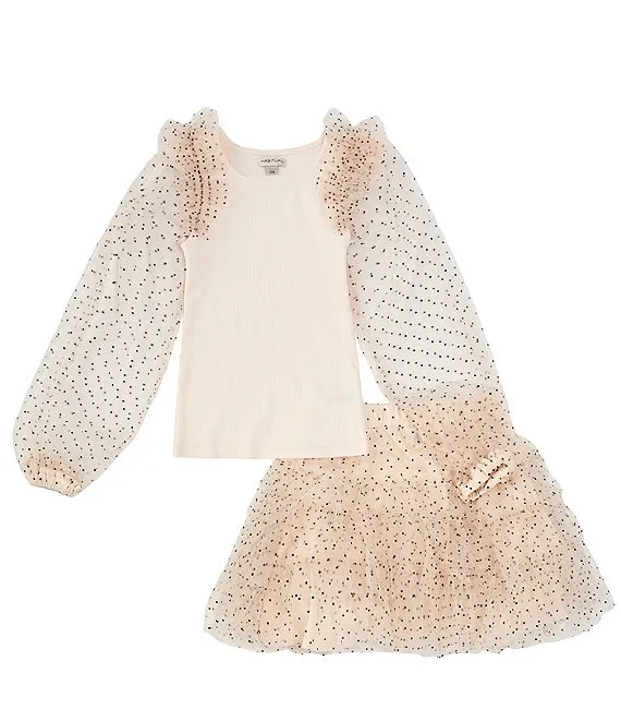 Big Girls 7-16 Long Sleeve Rib Top and Mesh Skirt Set