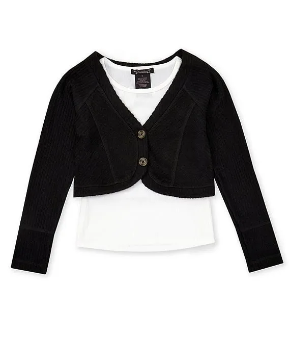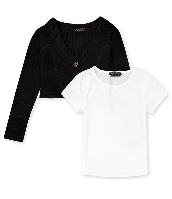 Big Girls 7-16 Long Sleeve Cardigan & Short Sleeve T-Shirt Set