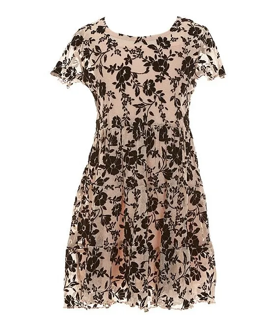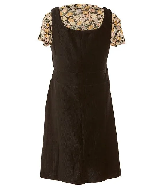 Big Girls 7-16 Sleeveless Corduroy Jumper Dress & Short-Sleeve Floral-Printed Mesh Tee