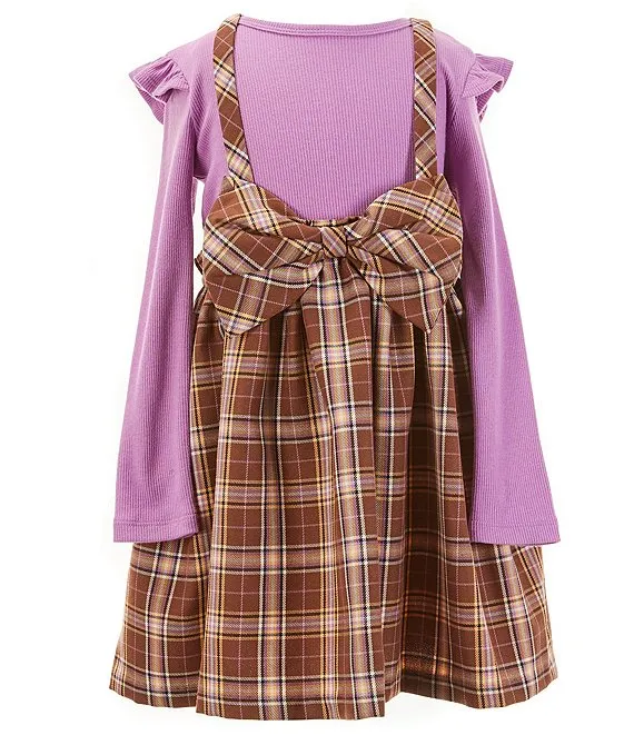 Bonnie Jean Little Girls 2T-6X Sleeveless Plaid Jumper Dress & Long Sleeve Solid Tee Set