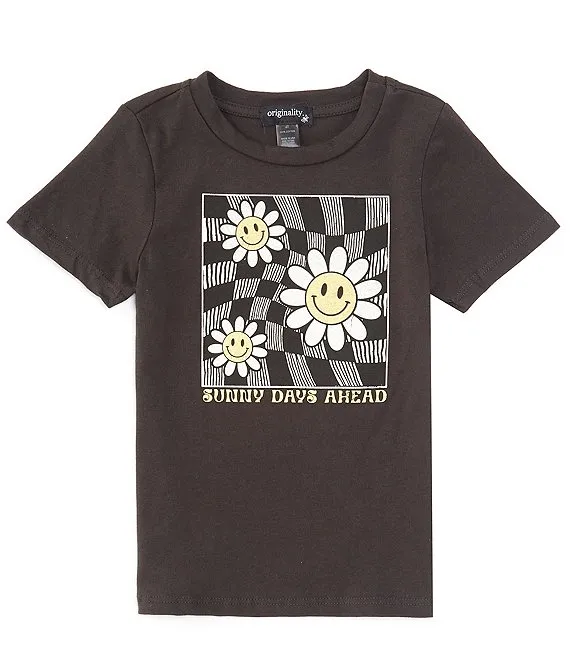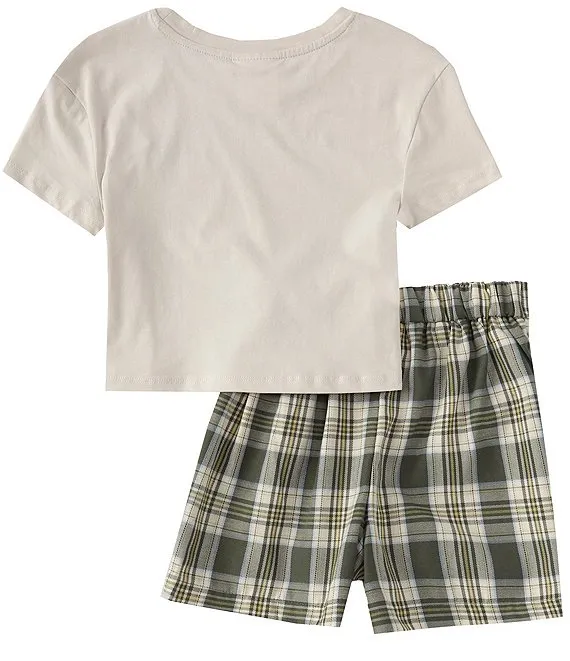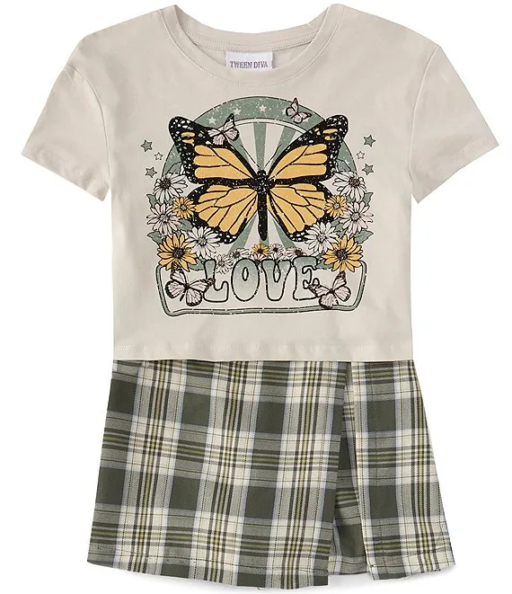 Big Girls 7-16 Short Sleeve Butterfly Screen Print Tee & Plaid Skort Set