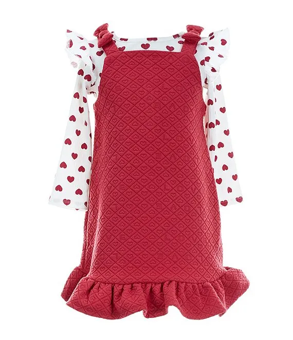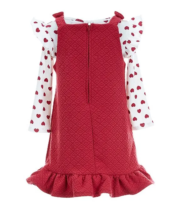 Little Girls 2T-6X Sleeveless Heart Motif Jacquard Jumper Dress & Long Sleeve Dotted Knit Tee Set