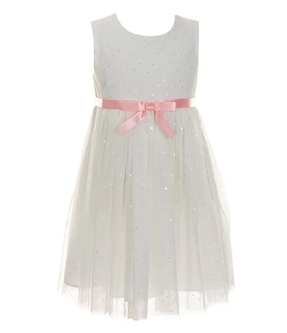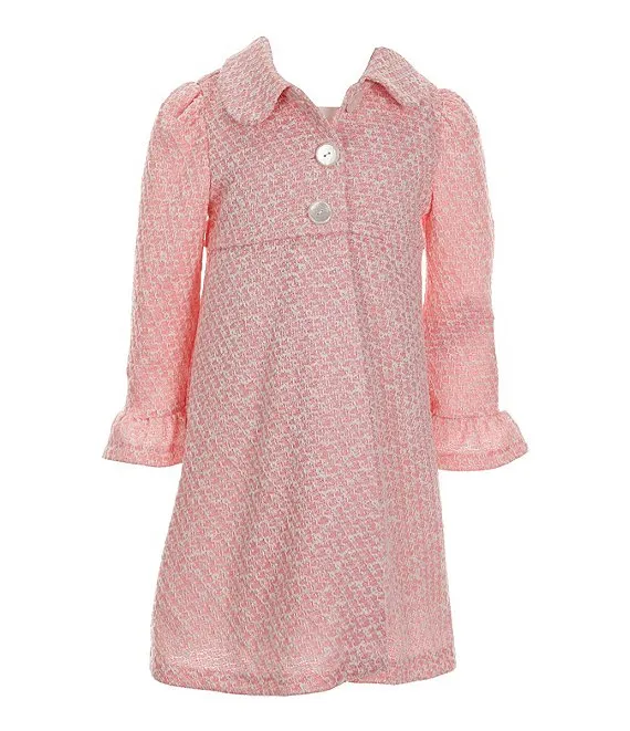 Bonnie Jean Little Girls 2T-6X Long Sleeve Knit Coat & Sleeveless Sparkle Mesh Fit & Flare Dress