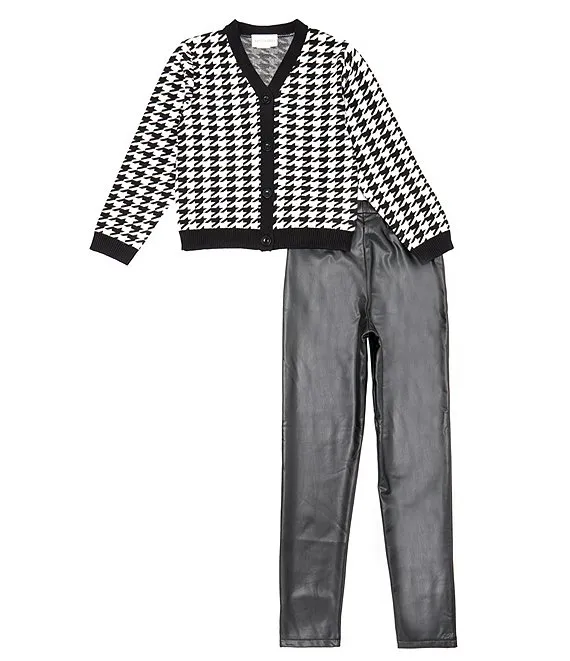Big Girls 7-16 Long Sleeve Houndstooth Cardigan & Solid Leggings Set