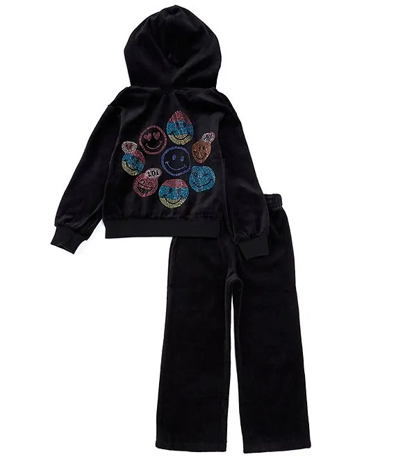 Little Girls 2T-6X Long Sleeve Smiley Face Jacket & Flare Leg Pant Set