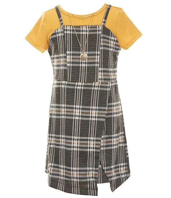Big Girls 7-16 Sleeveless Plaid Jumper Dress & Short Sleeve Solid Tee Set