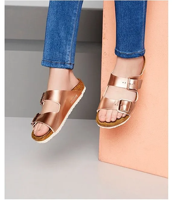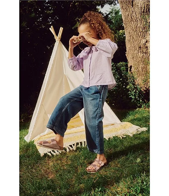 From Birkenstock, the Girls' Arizona Metallic Slip-On Sandals feature: