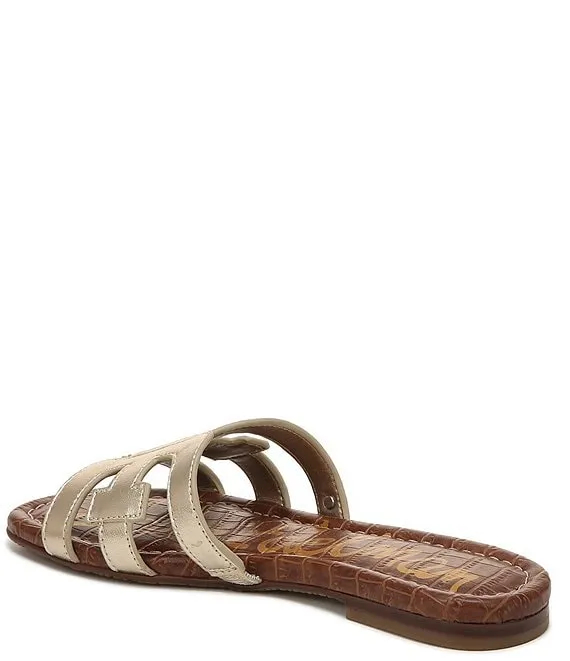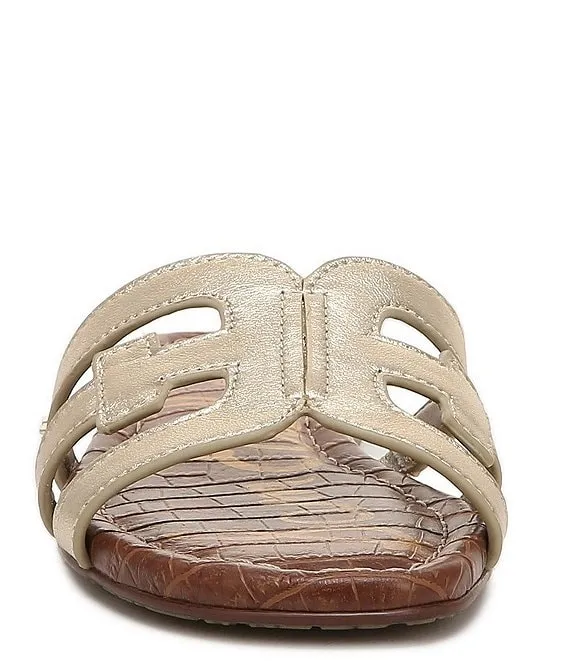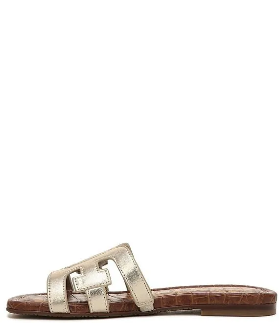 From Sam Edelman, the Girls' Bay Metallic Flat Slide Sandals feature: