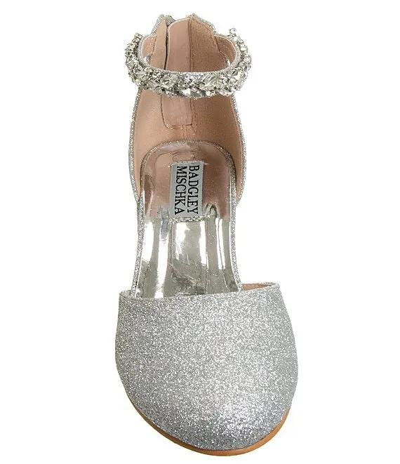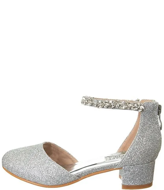 From Badgley Mischka, the Girls' Felicia Glitter Pumps feature: