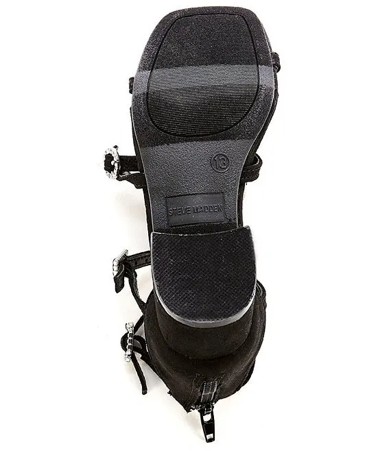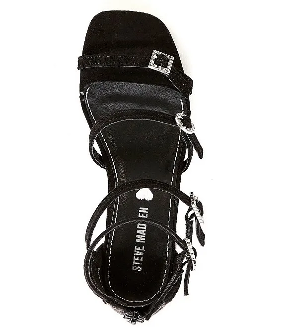 From Steve Madden, the Girls' J-Tarly Rhinestone Buckle Detail Dress Sandals feature: