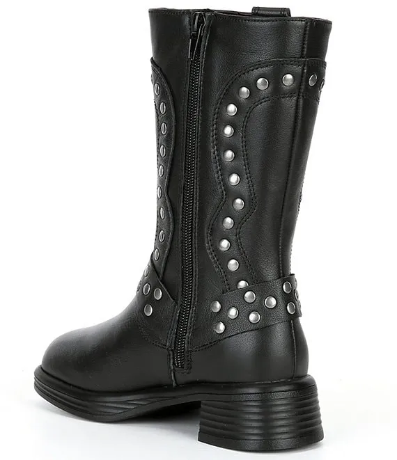 Girls' J-Valent Leather Studded Moto Boots (Youth)
