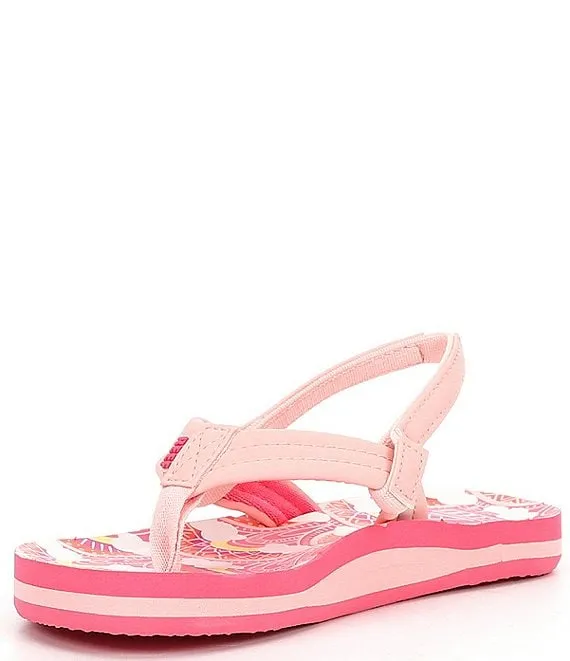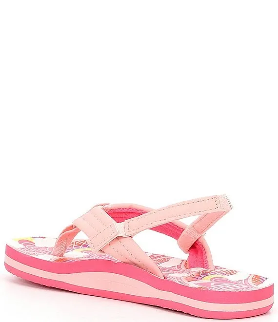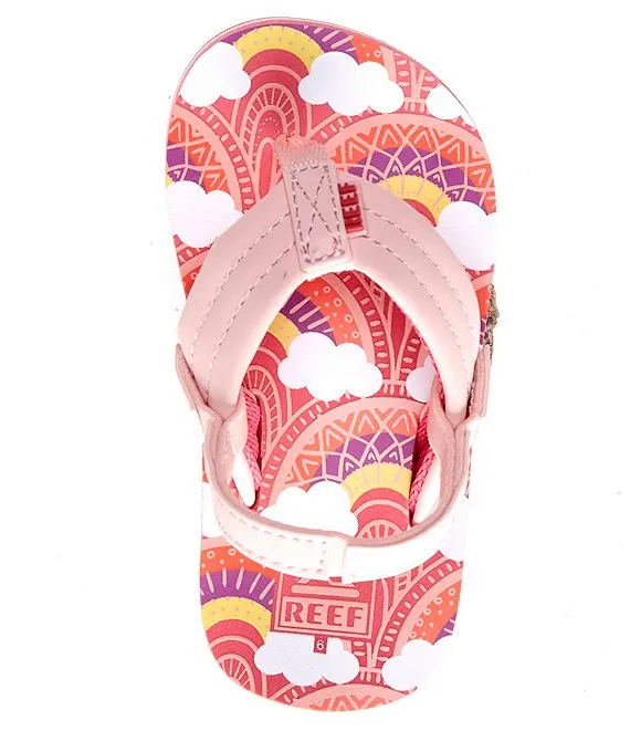 From Reef, the Girls' Little Ahi Rainbows and Clouds Flip-Flops feature: