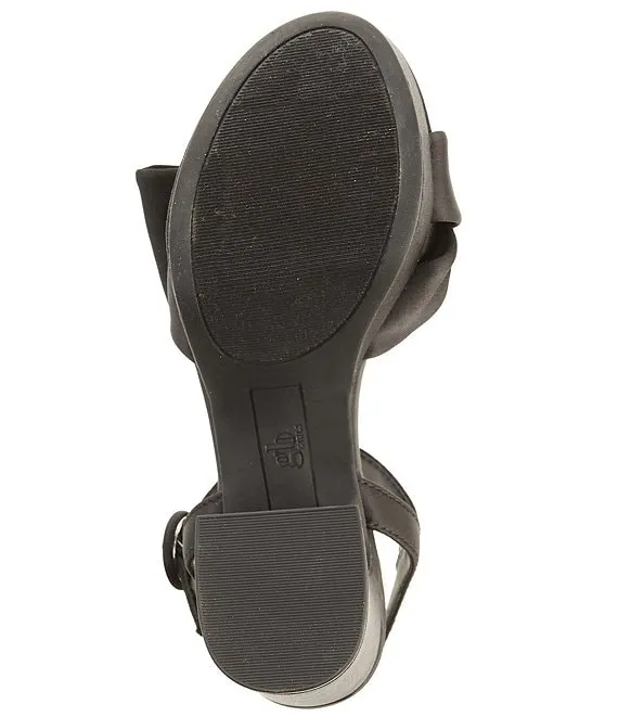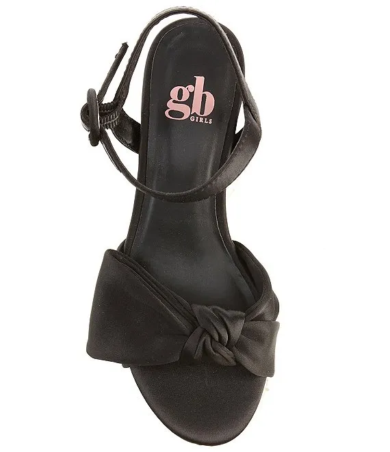 From GB, the Girls' Sadie Satin Half Bow Heel Dress Sandals feature:
