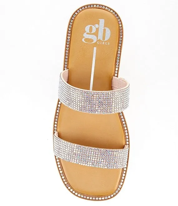 From GB, the Girls' Stola Double Band Rhinestone Embellished Flat Sandals feature: