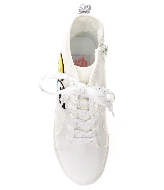 From GB, the Girls' Yinnie High Top Patch Sneakers feature: