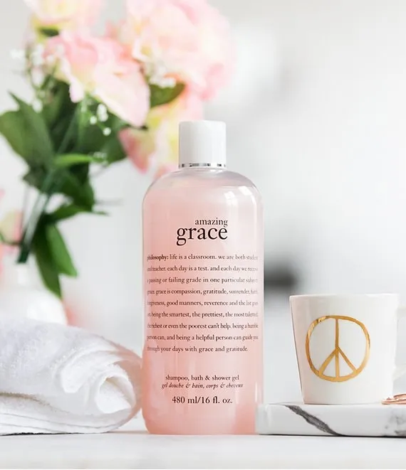 experience the best in bath-time luxury. amazing grace shampoo, bath & shower gel is an award-winning shower gel with the amazingly clean, beautifully feminine scent of philosophy's best-selling fragrance.
