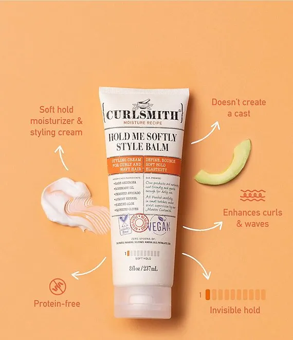 Light hold curl-enhancing styling cream that provides loose, soft definition without crunch for all curl types. This balm is a smooth whipped-cream moisturizer that enhances curls and waves achieving a natural, effortless look. It provides a very soft hold, which means you won't have any cast or crunchy residue. It's great on its own for a soft, romantic style, or if you want defined frizz-free curls you can layer it with a stronger hold styling gel.