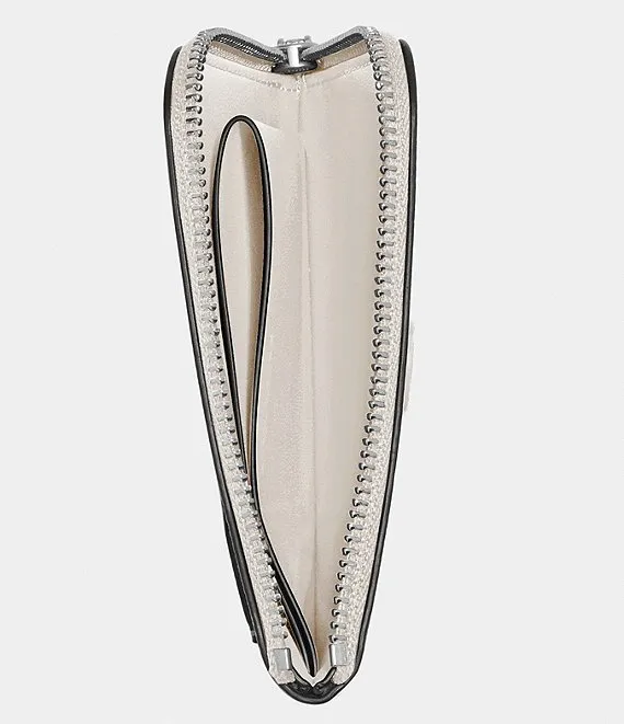 From COACH, the3-In-1 Crossgrain Silver Tone Colorblock Leather Zip Wallet features: