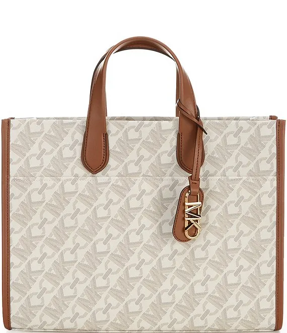 From Michael Kors, the Gigi Large Grab Signature Logo Tote Bag features: