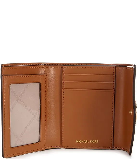 From Michael Kors, the Greenwich Signature Logo Semi Lux Medium Envelope Trifold Wallet features: