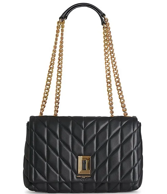 From KARL LAGERFELD PARIS, the Lafayette Medium Quilted Shoulder Bag features: