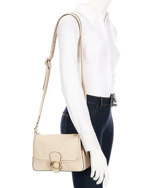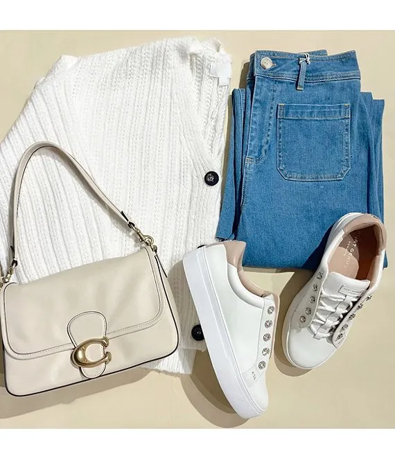 From COACH, the Logo Closure Soft Calf Leather Tabby Shoulder Bag features: