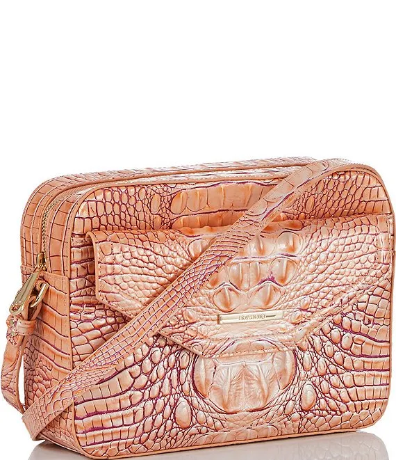From the Melbourne Collection by BRAHMIN, the Apricot Rose Shea Crossbody Bag features: