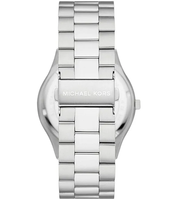 From Michael Kors, the Men's Slim Runway Three-Hand Stainless Steel Bracelet Watch and Luggage Saffiano Leather Wallet Set features: