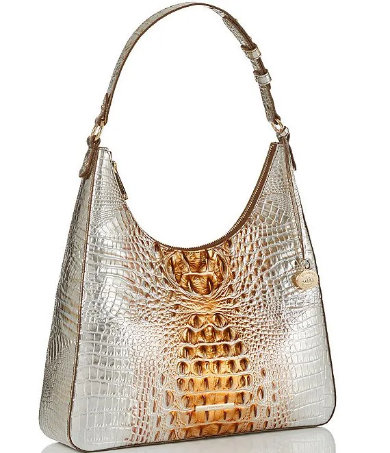 From the Ombre Melbourne Collection by BRAHMIN, the Tabitha Metallic Macchiato Crocodile-Embossed Shoulder Bag features: