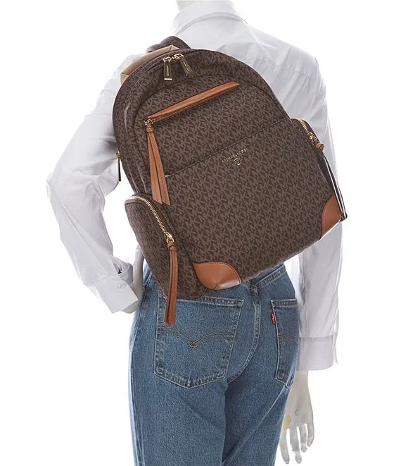 From Michael Kors, the Prescott Signature Logo Large Nylon Backpack features: