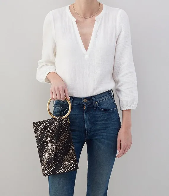 From HOBO, this Sheila Hard Ring Shooting Stars Leather Clutch features:
