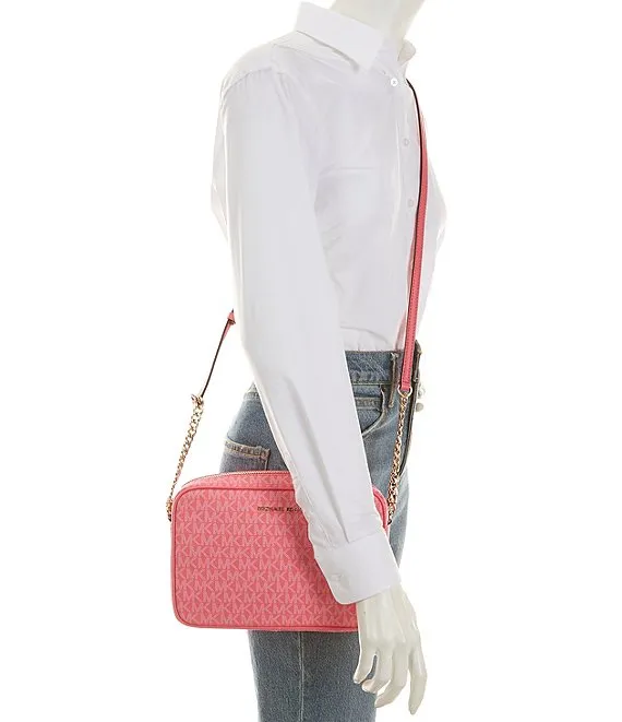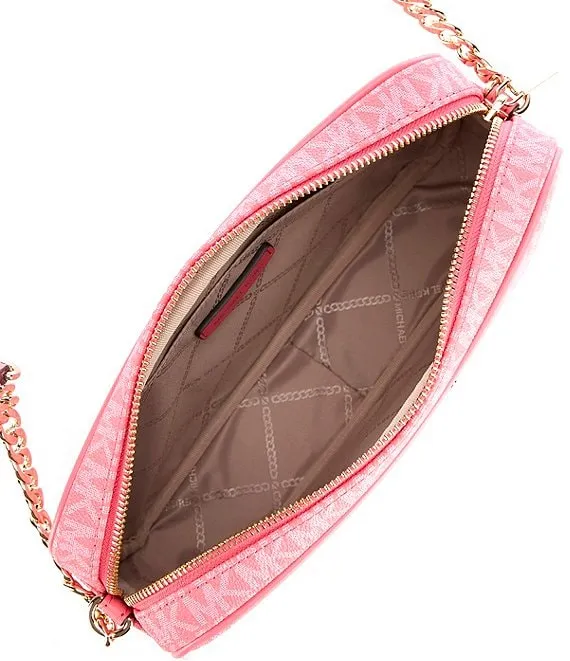 From Michael Kors, the Signature Logo Jet Set Large East West Crossbody Bag features: