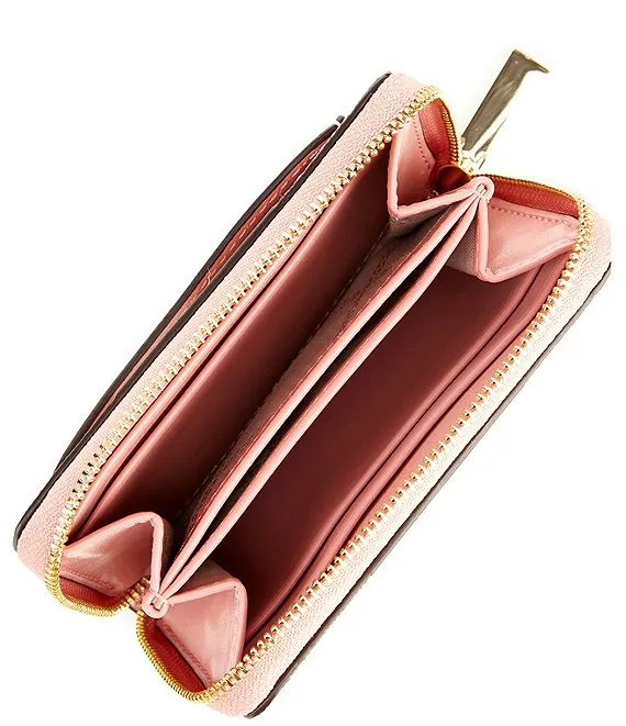 From Michael Kors, the Signature Logo Jet Set Small Colorblock Stripe Zip Around Card Case features: